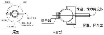 防霜型液位計主要用于零度以下的液體。低溫液體常在液位計表面結霜或冰無法觀看液面,在這種場合,可在顯示器前加裝丙烯基保護窗,整體加裝保溫材料,這樣就可經通過保護窗觀察到正確液位。 夾套型(J):